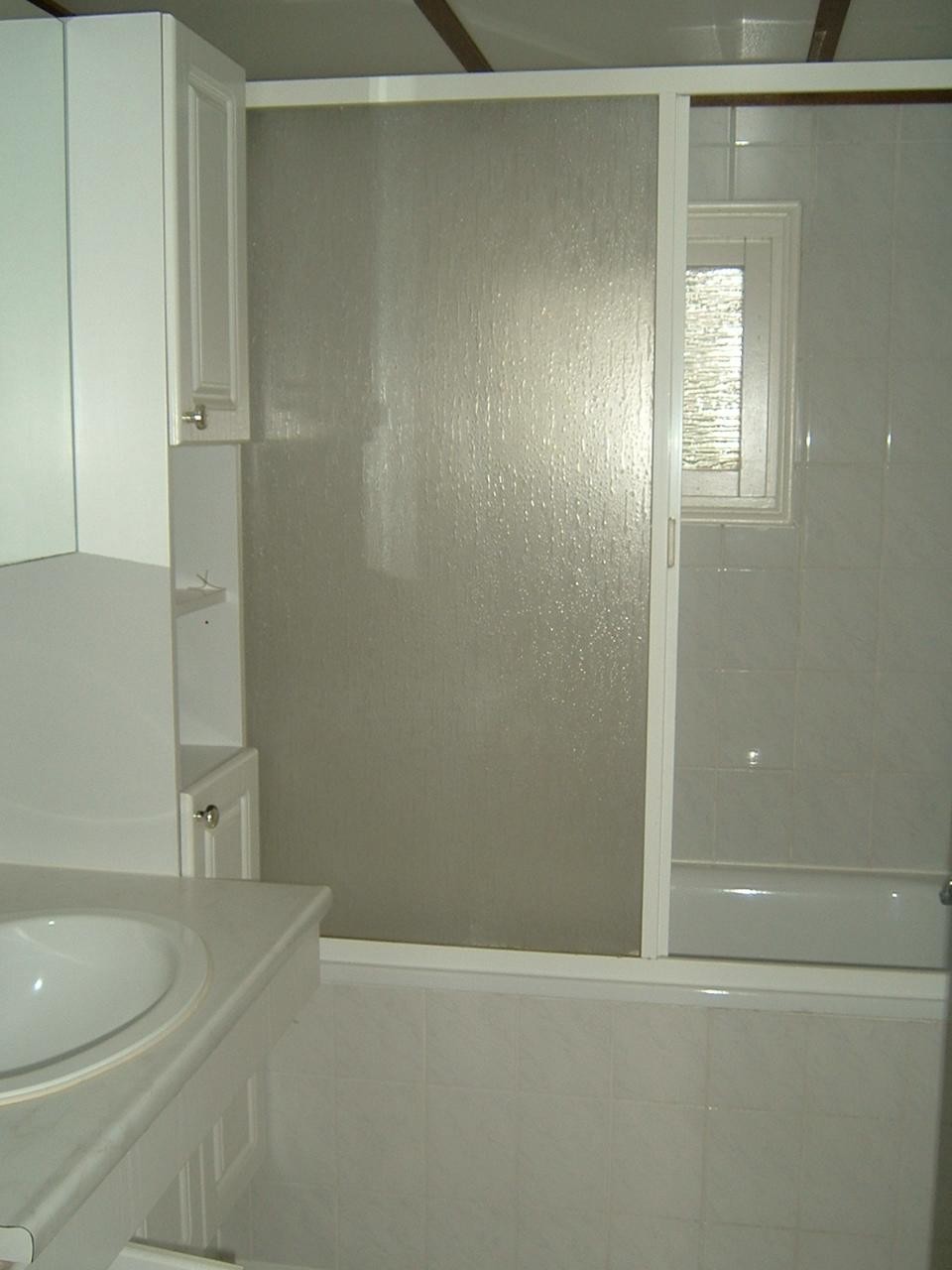 Badkamer met ligbad, toilet en wastafel. In het bad kan ook gedoucht worden.